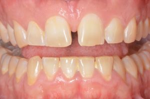 In questo caso, il paziente desiderava eliminare quello spazio eccessivo, ma non era l’unico problema: gli incisivi laterali presentavano una forma irregolare e asimmetrica, che rendeva il sorriso poco armonioso.