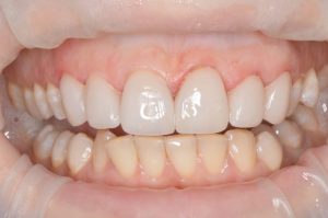 2. Fase 2 (Estetica): una volta allineati i denti, siamo intervenuti sul colore e sulla forma applicando 4 faccette in ceramica feldspatica.