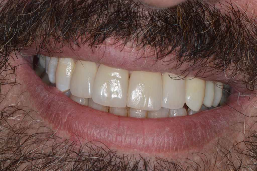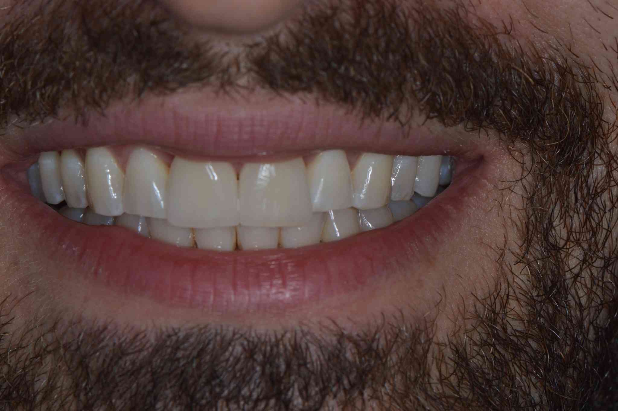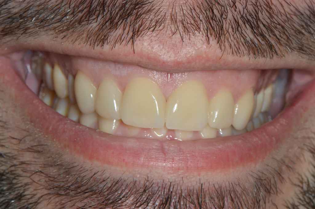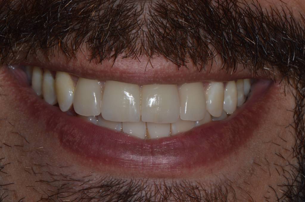 Il sorriso appare più “pieno” e ordinato, con una forma dei denti che valorizza la fisionomia del paziente senza artifici visibili.