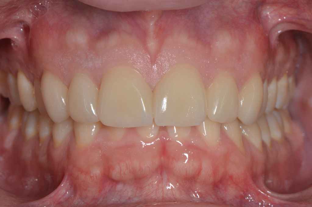 Per risolvere questo inestetismo dinamico, abbiamo optato per 2 faccette in disilicato di litio solo sui centrali.